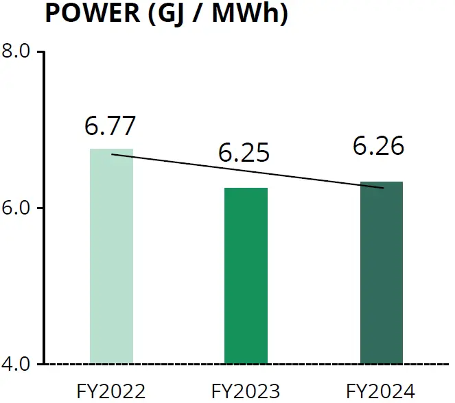 Our Power business reduced its average energy intensity by 4.3% year-over-year, supported by proactive efficiency measures and demand management strategies. SMGP worked closely with key utility customers and responded in real time to price fluctuations in the electricity spot market, ensuring that excess production capacity was aligned with load profile requirements.